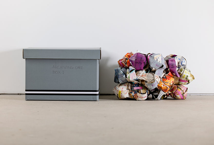 Archiving Care is a participatory, process-based sculptural work led by artists Claire Field and Caroline Phillips. In this work, participants are invited to consider what they have recently actively cared for and participate in building a growing archive of keepsakes, that materialises an archive of care. Archiving Care is an aesthetic and process-based response to these ideas, that connects the artists’ interests and practices of archiving the stories and histories of women’s art—Claire through FavourEconomy and Caroline through the Women’s Art Register —and amplifies the practice of archiving as a practice of care.